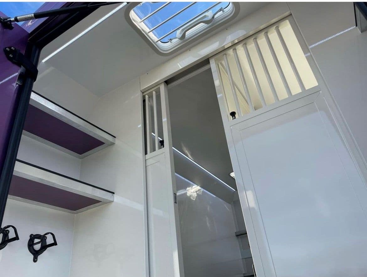 Självklart har vi fönster i hästdelen för optimal luft – lösningen möjliggör även stort packutrymme, så bästa lösningen för både häst och ryttare